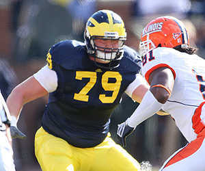 As you can tell from the 2010 Countdown linked above, I was never really a fan of Dorrestein’s ability. He wasn’t athletic enough to be a left tackle, he was too tall and lacking the athleticism to play guard effectively, and he was just a so-so right tackle. His 3-star ranking by both major recruiting services was pretty accurate. However, I was pleasantly surprised with Dorrestein’s play in 2010. He wasn’t an obvious weakness for a line that paved the way for one of the nation’s best rushing attacks, and the offensive line allowed very few sacks overall. He still lacked the ability to get movement on opposing linemen consistently, but I thought Michigan’s offense tended to be a little left-handed in the running game, using the left side combo of Taylor Lewan and Steve Schilling to gain most of its rushing yardage. That was probably a smart move on the part of Rich Rodriguez, but Dorrestein played solidly for a productive unit.