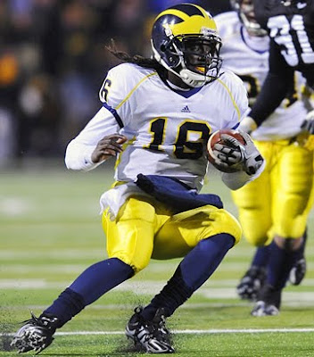 Tate Forcier seems to be the quarterback of the future. He has started every game this year and leads the team in passing. So far he has thrown for 1,167 yards, 9 TDs, and 5 INTs while completing 55.3% of his passes. And in Rich Rodriguez’s read option offense, Forcier has 75 carries for 190 yards.