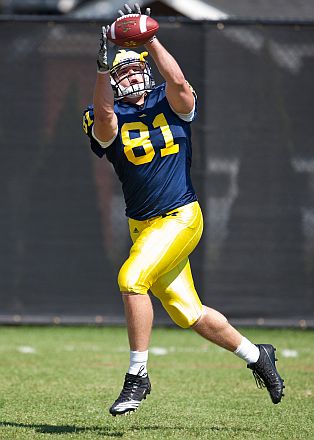 As you can tell by my season countdown preview for Kwiatkowski from last season, he didn’t completely come out of the blue. In the few clips that I had seen of him from spring practices and such, I thought he had the right size and athleticism to be a contributor. I didn’t expect him to be a starter because Moore seemed to have that job wrapped up, but the injury helped pave the way. Kwiatkowski turned out to be a solid blocker (perhaps helped by that one season as a scout team offensive lineman) and a capable receiver (I don’t remember a single drop), although he wasn’t outstanding in any particular phase. To start six games and catch a few passes is a pretty good deal for someone who only joined the team during what amounted to his redshirt sophomore year.