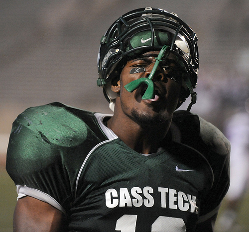 I think Jenkins-Stone has the potential to be a very good player. However, my guess is that he will take several years to develop. Cass Tech players like Boubacar Cissoko, Teric Jones, and William Campbell have been a little slow to develop at Michigan. The jury is still out on Thomas Gordon, who hasn’t played much in his first two years, but exists on the border of starting. Brandon Graham took two or three years to realize his potential, depending on whether you think that happened in late 2007 or early 2008. Dior Mathis and Daniel Easterly went to Oregon and Missouri, respectively, as part of the 2010 class, and both redshirted this past season. Cortez Smith, who went to Indiana a few years back, was booted from the team for legal problems. Exceptions exist – Joseph Barksdale and Vernon Gholston both had pretty early success at LSU and Ohio State, respectively. It just seems that kids from the PSL take a little while to shake the bad habits. But I do see leadership and passion when I watch Jenkins-Stone play, so if he can avoid some common pitfalls of inner city players (legal trouble, bad technique, etc.) and channel that passion into being the best player he can be, this kid could be a sideline-to-sideline tackling machine for the Wolverines in a few years.