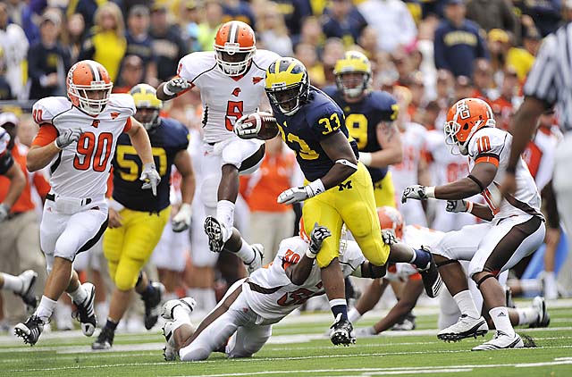Quarterback: Denard Robinson’s athleticism is a given asset. Some people say he looks faster this spring, and that might make sense, because I thought he looked a little slower in 2011 than he had in 2009 and 2010. I’m not sure if it was conditioning, an injury, or a figment of my imagination, but he didn’t seem to have the same acceleration. His mechanics don’t seem to have improved, but after three years of playing quarterback in college, I’m resolved to the fact that he will be throwing off his back foot until he’s no longer playing the position. Meanwhile, Devin Gardner has looked excellent in his limited highlight exposure. He’s in no danger of beating out Robinson, of course, but rumors suggest that he looks like a pretty good successor. Practice rumors about Bellomy have suggested that he looks like a solid quarterback who lacks a little bit of arm strength, but the general buzz on him is that Michigan did a good job grabbing him as a sleeper.