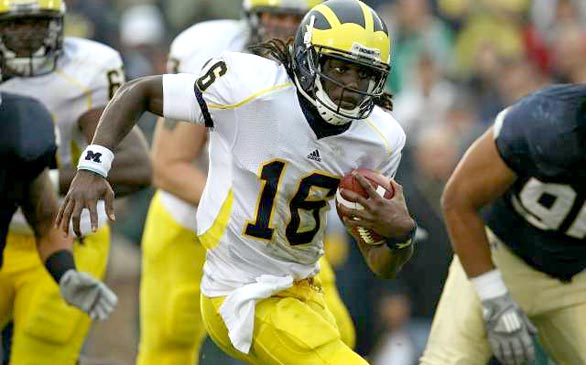 There were so many things that Michigan fans learned yesterday about their team, and I’ll try to touch on a few of them here:Denard Robinson is really, really good. Notre Dame’s defense made a distinct attempt to stop him. He still ran for 258 yards (a Big Ten record for a QB) on 28 attempts (9.2 yards per carry), including an 87-yard touchdown and the 2-yard game-winner. The Fighting Irish have an experienced defense and run a 3-4 scheme that isn’t seen much in college, but Robinson was also able to throw for 244 yards on 24/44 passing (55%) (EDIT: Reader MH20 pointed out that Denard was 24/40 for a 60% completion rate) against three seniors and a sophomore in the defensive backfield.